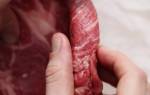 Желтый жир – признак старого животного. Значит, такое мясо будет жестким, и готовить его придется дольше. У хорошей молодой говядины жир белый и крошится, качественная свинина отличается бело-розовыми упругими прослойками сала. Самый высший сорт говядины – это говядина мраморная, у которой мясо равномерно пронизано жировыми прожилками. При готовке такое мясо получается особенно нежным и сочным.