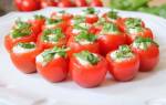 8. Заранее прогреть духовку до 180 градусов. Поместить в нее форму с фаршированными грибами и запекать 15 минут. После чего выложить закуску на блюдо, украсить при желании и подать к столу.