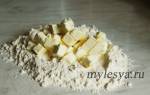 - Просеять 1,5 ст. муки, добавить 0,5 ч. л. соли, 0,5 ст. л разрыхлителя и 50 г сахара.