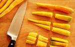 - Нарезаем очищенный и помытый корнеплод крупными брусками. Подойдут кусочки размером 2-5 см., но не более. Целую морковь использовать не рекомендуется, поскольку можно сломать блендер.